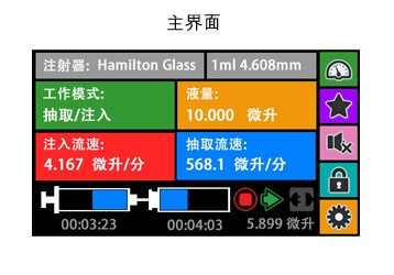 • 显示:4.3寸彩屏液晶,分辨率480*272,颜色65K;同屏幕显示传输液量,剩余液量,流量,运行方向,注射器规格等;动画显示运行状态;
