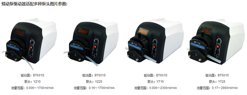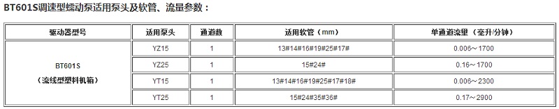 BT601S调速型蠕动泵流量范围0.006~2900毫升/分钟;工作转速0.1-350转/分钟;具有正反,启停,全速(清洗),调速等基本功能外,另外还可通过“简易分装键”实现定时定量输送液体的功能。在RS485通讯中,因为采用了MODBUS协议,更易于与其他控制设备如计算机,人机界面,PLC等连接。