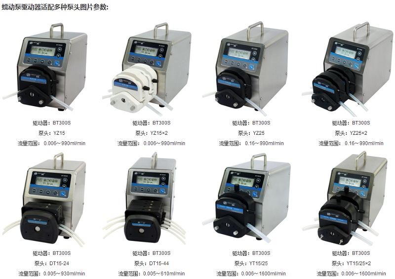 BT300S调速型蠕动泵流量范围0.006~1600毫升/分钟;工作转速0.1-350转/分钟;专用的LF-LCD-OS软件系统,中英文显示,简单方便;具有转速调节,正反,启停,全速(清洗)等基本功能;专用的“简易分装键”,功能强大,可实现定时定量,连续分装,流量测试等功能。