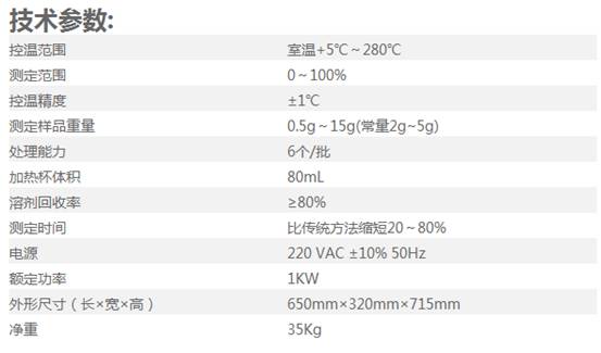 SOX406脂肪测定仪具有精准的定时提醒功能,专配的报警系统在出现过温情况时,通过声、光、液晶屏文字三重方式提示用户;整机采用特有的防腐蚀技术,有效避免环境对机器的影响。一体化金属浴加热模块,使温度控制范围更加广泛,并有效延长加热板的寿命。内置专业的PID控温系统,能够让控温精度小于1℃。