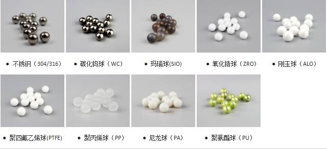 不锈钢、玛瑙、氧化锆、刚玉、尼龙、聚四氟乙烯可选