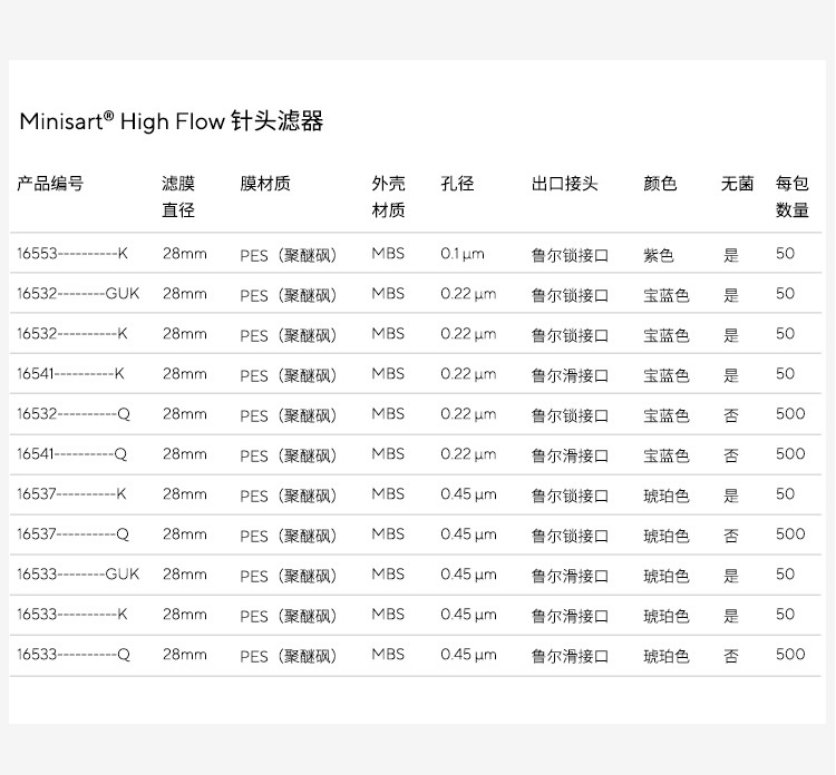 > Sartorius赛多利斯 Minisart High Flow 聚醚砜PES针头过滤器