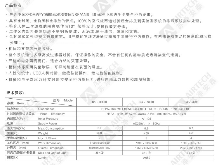 过滤效率:@0.3μm 99.995%。洁净度:ISO 5(100级)