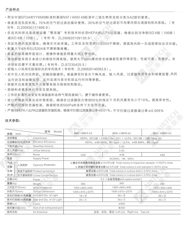 过滤效率:@0.3μm 99.995%。洁净度:ISO 5(100级)