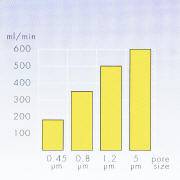 右图:Minisart-N型针头滤器大的过滤膜面积和非常低的支撑体残留,根据其孔径的不同,其流速显示了相对恒定的增长。