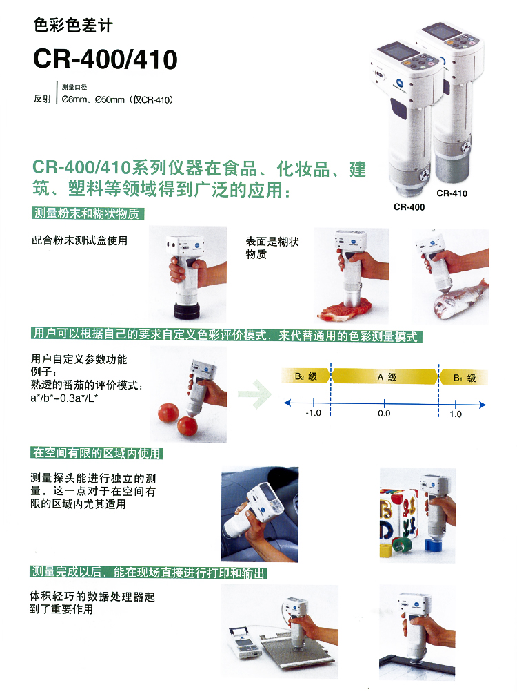 用户校正功能(多点校正/手动校正),自动测量平均功能,印表机自动打印功能,可以输入测量数据的功能,打印色空间的功能,数据保护功能,背光指示开关功能,蜂鸣功能,色空间选择功能,遥控模式(存储数据输出),文字输入功能 |