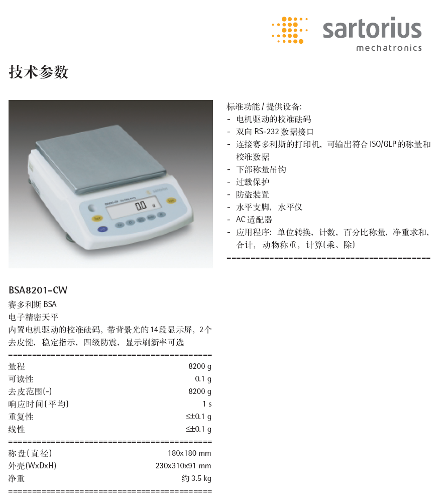 赛多利斯BSA8201-CW精密天平(0.1g/8200g,内校)