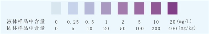 约2~3min观察显色情况,以白纸或白瓷板衬底,呈蓝绿色为阴性反应,蓝紫色或紫红色为阳性反应,如需定量可参照色标板进行半定量判定。