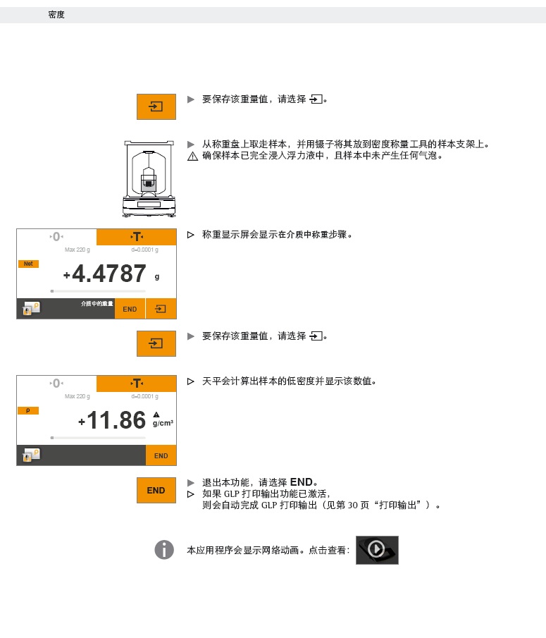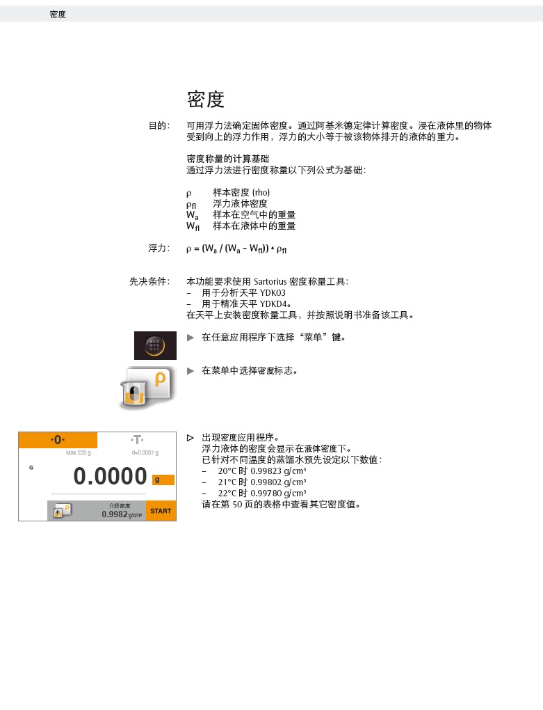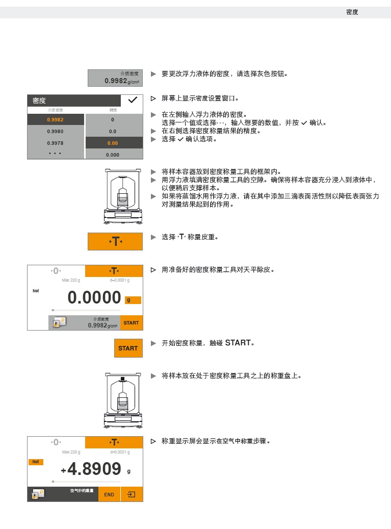 天平精度为0.1mg, 密度显示精度为0.001g/cm3