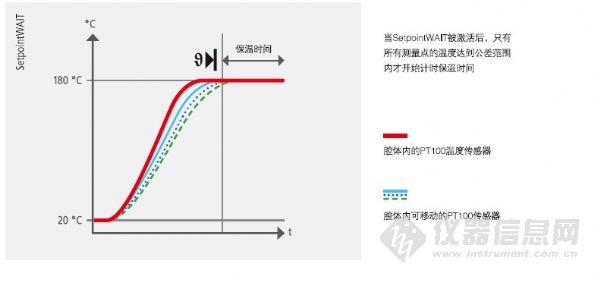对仪器和实验室设备进行高温灭菌时,精确定时的温度控制能够帮助拯救生命。因此,SetpointWAIT功能保证只有到达设定温度才会开始计时灭菌时间。额外使用可自由定位的Pt100传感器(可选)进行测量时,所有测量点必须均达到设定温度,这对继续执行程序而言至关重要。ControlCOCKPIT上会直接显示最多三个测量值,或在外部测试装置或4-20mA接口上显示一个测量值。