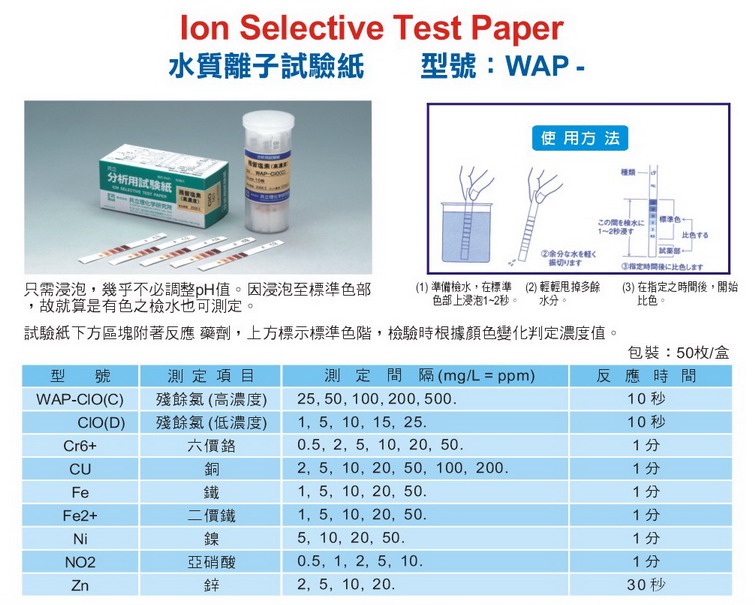 WAP-水质离子试验纸日本共立( KYORITSU)--中国总代理大量批发供应, 型号:WAP-