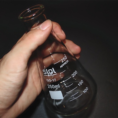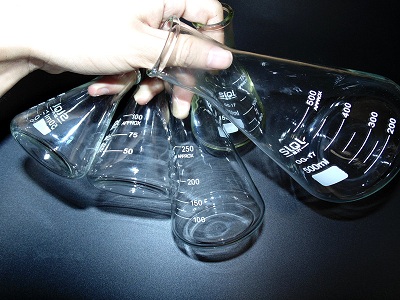 锥形瓶一般使用于滴定实验中。为了防止滴定液下滴时会溅出瓶外,造成实验的误差,再将瓶子放在磁搅拌器上搅拌。也可以用手握住瓶颈以手腕晃动,即可顺利的搅拌均匀 。也可用于盛装反应物,定量分析,回流加热,而其外形则使它十分适合这些工作。其长颈部份除方便加上塞子外,亦能减慢加热时的流失及避免化学物品溢出;至于其平而宽阔的底部则容许锥形瓶盛载更多的溶液、方便用玻璃棒搅拌及容许锥形瓶平放在桌上。