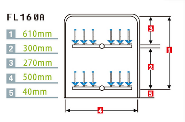 ■ 可放置二层清洗架,上层放置容器最高为150mm,两层同时放置时下层容器最高为180mm;单层放置容器最高为420mm。