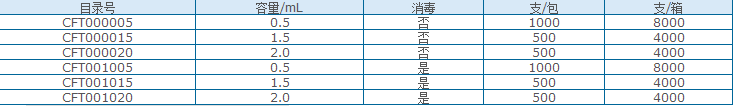 ◎ 3种容量规格可选:0.5、1.5、2.0mL