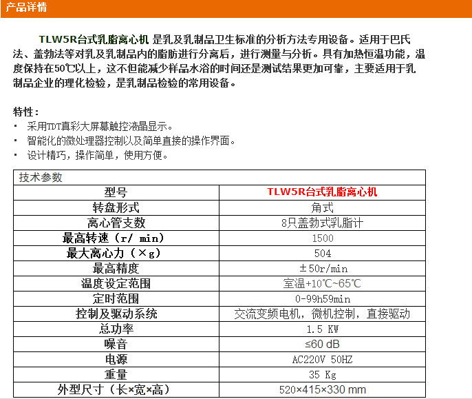 | 最大容量:8支盖勃式乳脂计 最大转速(r/min):1500 |