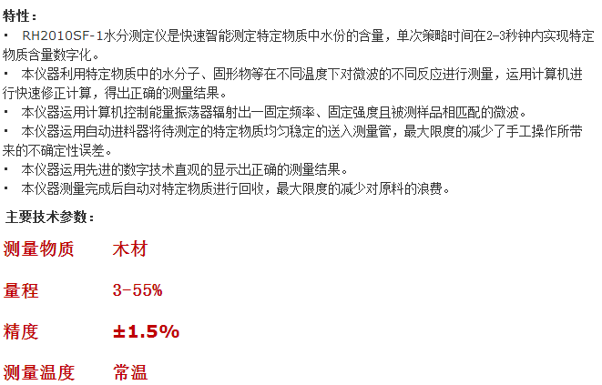 经过湖南赫西仪器装备有限公司多年研究及开发,终于研制出全新的RH2010SF-1水分测定仪。主要应用于食品安全、化工生产等快速水份及在线水份的测定。2014年5月21日,荣获第十二届中国国际科学仪器及实验室装备展览会(CISILE 2014)自主创新金奖。