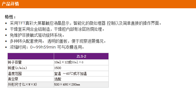 ZLS系列真空离心浓缩仪,综合利用了离心、抽真空和加热等手段,有效地蒸发溶剂,高效率回收生物或分析样品。广泛地应用到生命科学和化学、制药等领域。