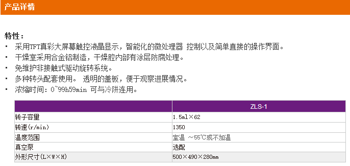 ZLS系列真空离心浓缩仪,综合利用了离心、抽真空和加热等手段,有效地蒸发溶剂,高效率回收生物或分析样品。广泛地应用到生命科学和化学、制药等领域