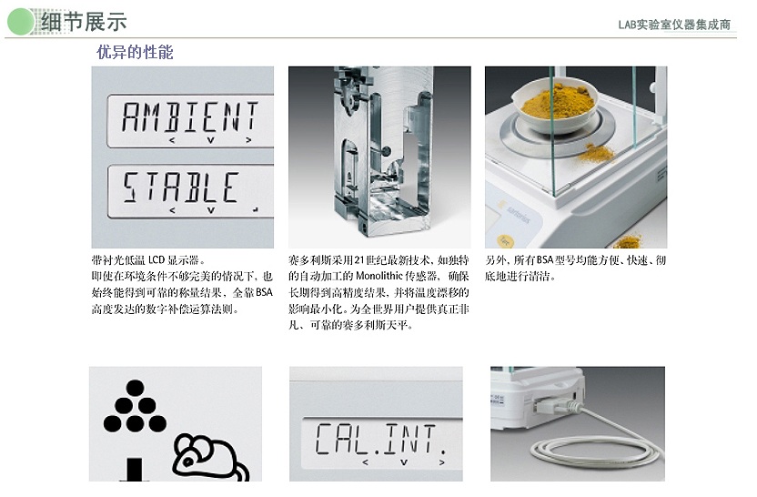 最新力作,成就实验室工作。如果对比一些常用实验室天平的技术参数,您会发现它们看上去都一样,也就是说-看到一个型号,就能了解它们全部。但事实上,实验室天平仅仅考虑技术参数是远远不够的。赛多利斯最新BSA系列电子天平设计独特,能有效、可靠地进行实验室日常称量工作。而正是由于其强大的技术和明确的操作计功能,使其显得与众不同。