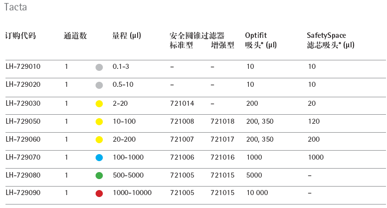 - 单通道型号涵盖了 0.1 µl- 10 000 µl 的量程,多通道型号量程覆盖 0.5 µl – 300 µl