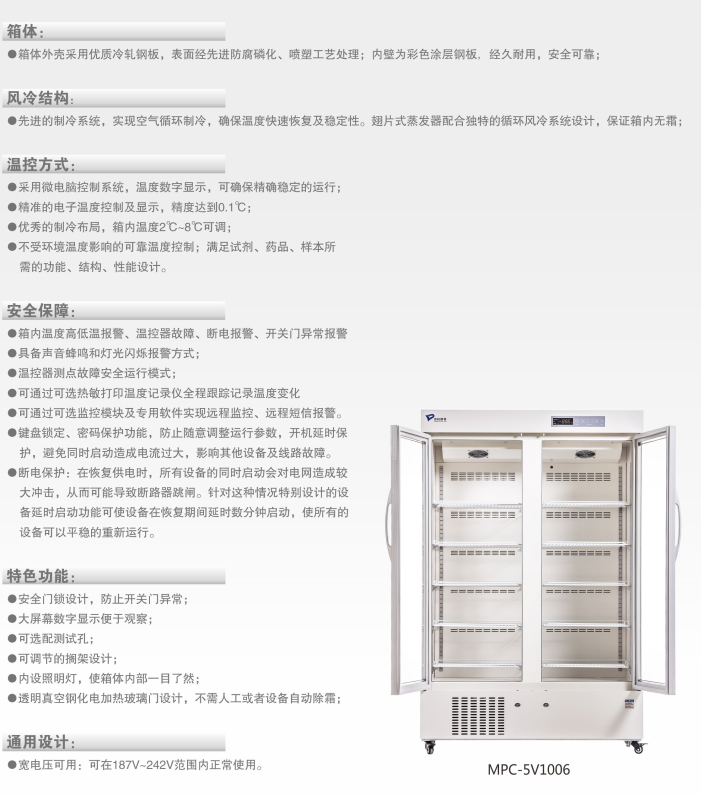 风冷结构先进的制冷系统,翅片式蒸发器配合独特的循环风冷设计,保证箱内无霜