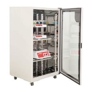 PY-16、PY-30是专为使用细胞转瓶培养器培养细胞而配套设计、生产的恒温箱,它们为细胞生长提供了温度可调的培养空间,对于小批量的试验、生产来说,比建造恒温室节省空间和能源。除了为大批量细胞生产而设计的超大型细胞转瓶培养器外,对应型号的细胞转瓶培养器均可整机放入恒温箱内使用。PID程序的自动温度控制和双壁隔热层设计,使温度控制更精确、稳定。内壁采用镜面不锈钢,使得清洗更为方便。