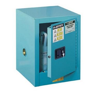 SureGrip®EX钢制腐蚀性工作台式安全柜;4加仑;带一块搁板;单门;手动关闭式。
