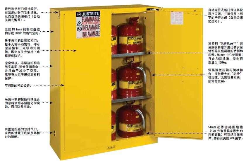 | 黄色易燃液体存储柜,FM认证,30加仑/114升,双门/自动8
