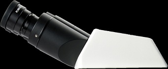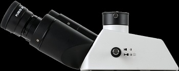 无限远铰链三通观察头,正像,5-35°倾角可调,单边视度可调观察筒,瞳距调节范围:50-76mm,两档式分光比:双目:三目=100:0或0:100 |
