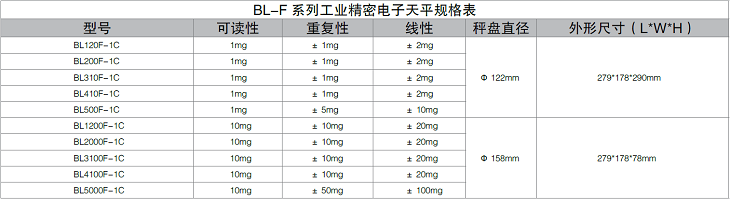 BL-F 天平均具有过载保护装置,在称量过程中意外过载或冲击不会对天平性能产生影响。此外, RS-232 接口及多种输出模式、反应速度设定及简单的通讯协议功能,也便利用户。
