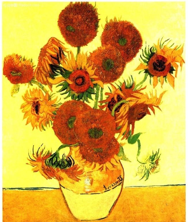 对于梵高而言,向日葵这种花是表现他思想的最佳题材。夏季短暂,向日葵的花期更是不长,梵高亦如向向日葵般结束自己短暂的一生,称他为向日葵画家,应该是恰如其分。