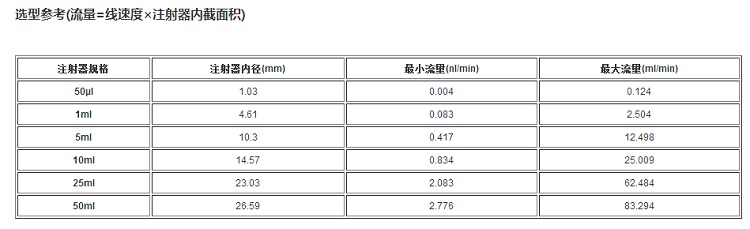• 注射器选择:内置主要厂家,主要型号注射器供选择;可使用自定义注射器,直接输入注射器内径;