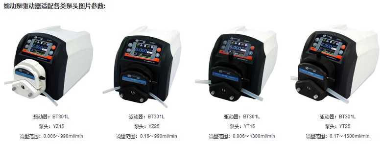 BT301L流量型智能蠕动泵流量范围0.006~1600毫升/分钟。采用彩色液晶和触摸屏技术,操作界面简单,直观,明了。主要适用于精准流量传输控制,用户可以根据自己的需要流量显示,流量控制,流量累计。同时本产品实现了重复定时定量传输。适用于精确计量和定量给料,精度最高可达0.5%,为了减小不必要的蠕动泵噪音,采用了智能温控技术。在RS485通讯中,因为采用了MODBUS协议,更易于与其他控制设备如计算机,人机界面,PLC等连接。