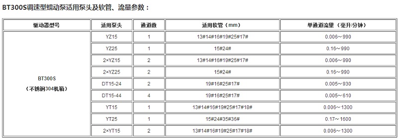 BT300S调速型蠕动泵流量范围0.006~1600毫升/分钟;工作转速0.1-350转/分钟;专用的LF-LCD-OS软件系统,中英文显示,简单方便;具有转速调节,正反,启停,全速(清洗)等基本功能;专用的“简易分装键”,功能强大,可实现定时定量,连续分装,流量测试等功能。