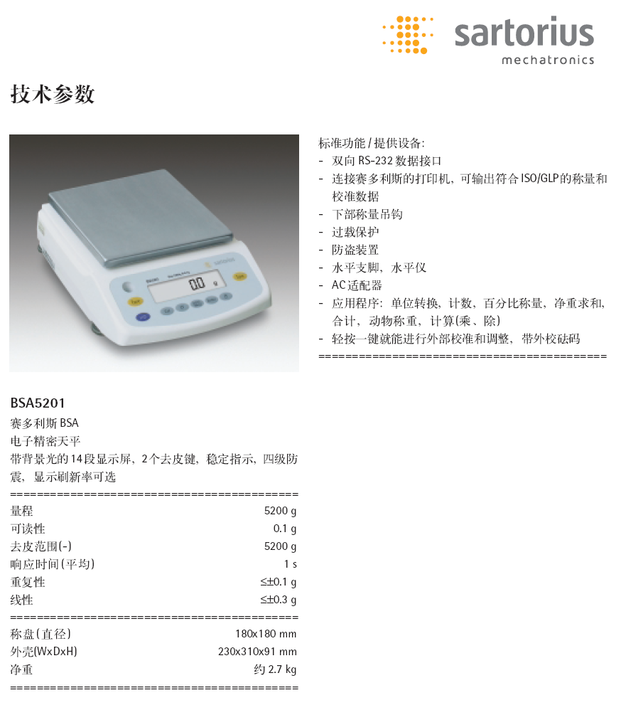 赛多利斯BSA5201精密天平,0.1g/5200g,赛多利斯天平--广州市授科仪器科技有限公司,授科仪器,赛多利斯中国,赛多利斯维修中心,广州仪器网,一号仪器网,英国艾德姆