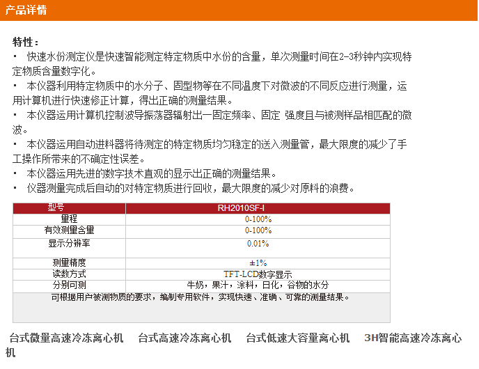 经过湖南赫西仪器装备有限公司多年研究及开发,终于研制出全新的RH2010SF-1水分测定仪。主要应用于食品安全、化工生产等快速水份及在线水份的测定。2014年5月21日,荣获第十二届中国国际科学仪器及实验室装备展览会(CISILE 2014)自主创新金奖。