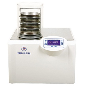 普通型冷冻干燥机;冷阱温度(空载):≤-56℃;极限真空度(空载):≤10Pa ;最大捕水量:3kg ;物料托盘、冻干量:普通型(普通型用于散装物料):Φ170mm共4层,层间距45mm,冻干面积0.1㎡;主机外形尺寸(长×宽×高):615mm×665mm×400mm(不含干燥室);整机功耗:1000VA;适用电源:220V 50Hz; |